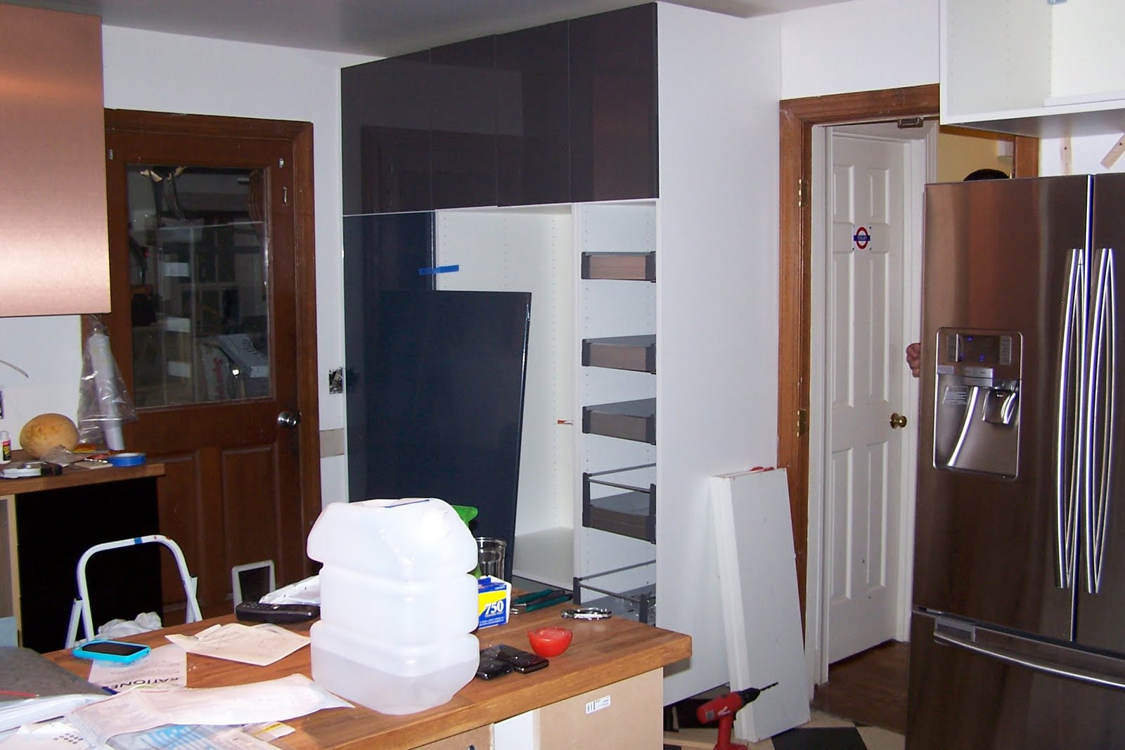 I am hoping to have unpacked back into the kitchen pretty much completely by Sunday. We won't be done yet because we are still waiting for some back ordered door front and cover panels from Ikea and for the back corner of flooring that I had to order when we ran out.